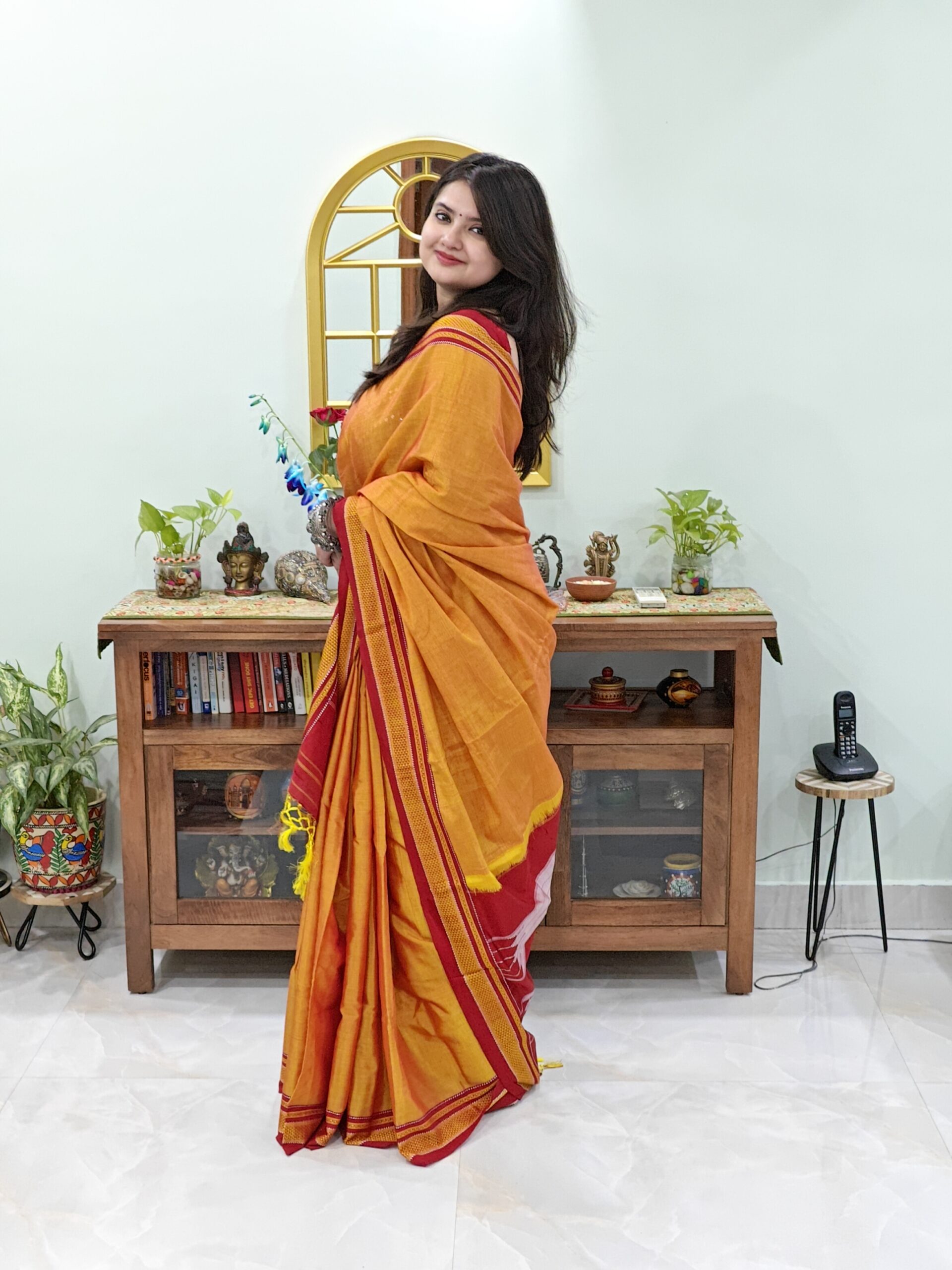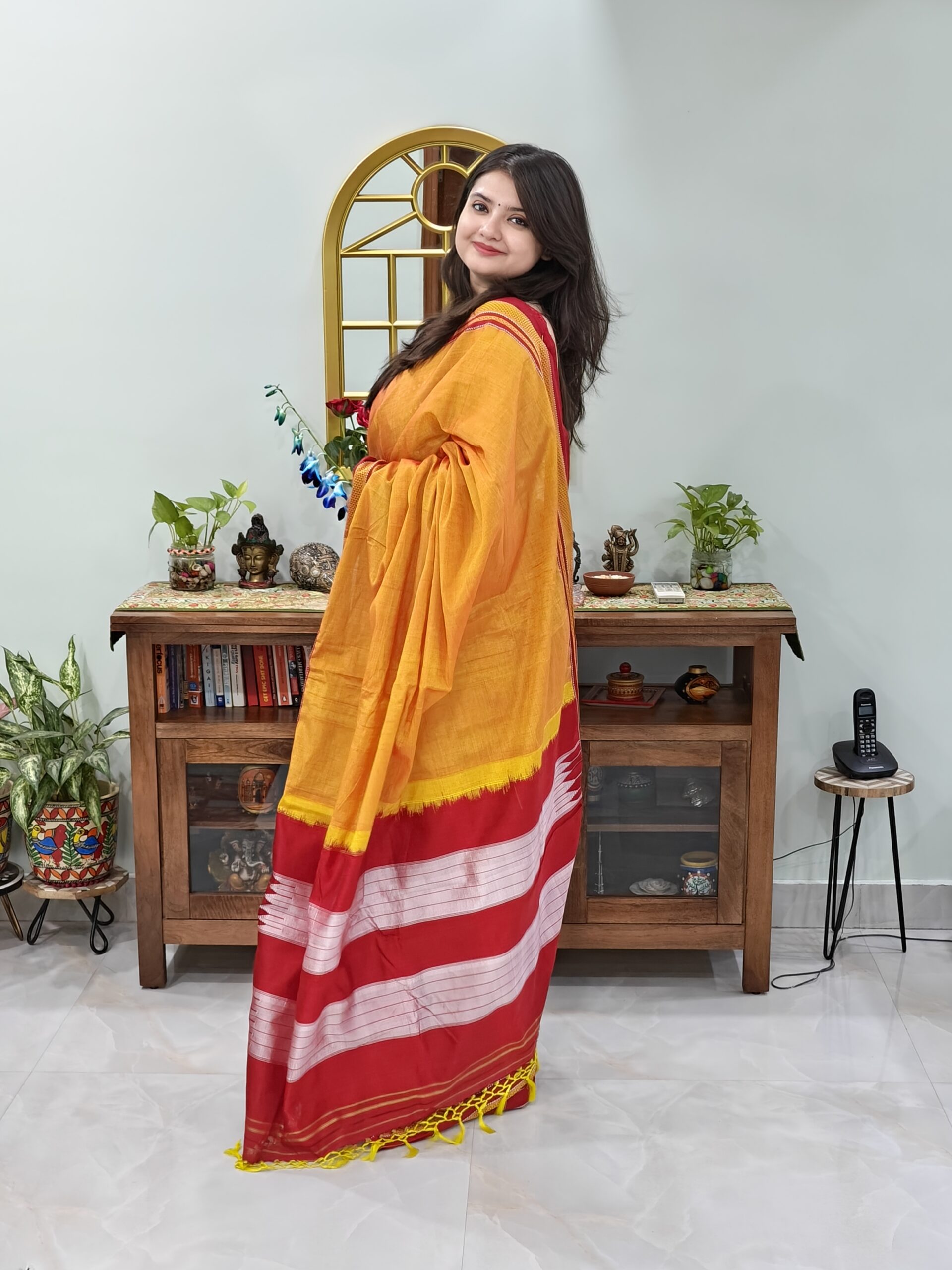 | Fabric: Cotton Silk, Colourv: Mustard yellow | Mustard colour with marun colour boarder |