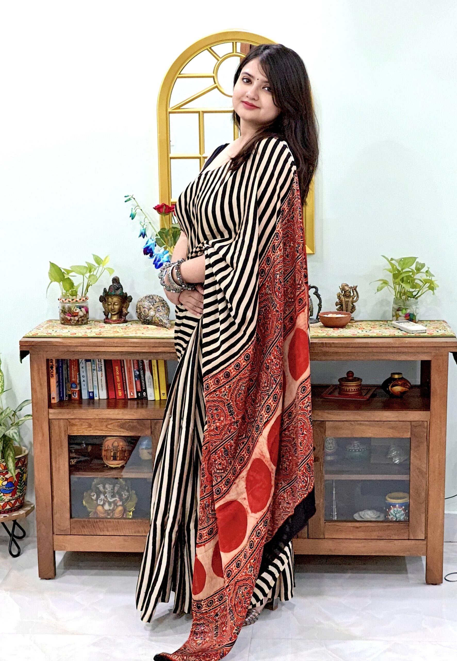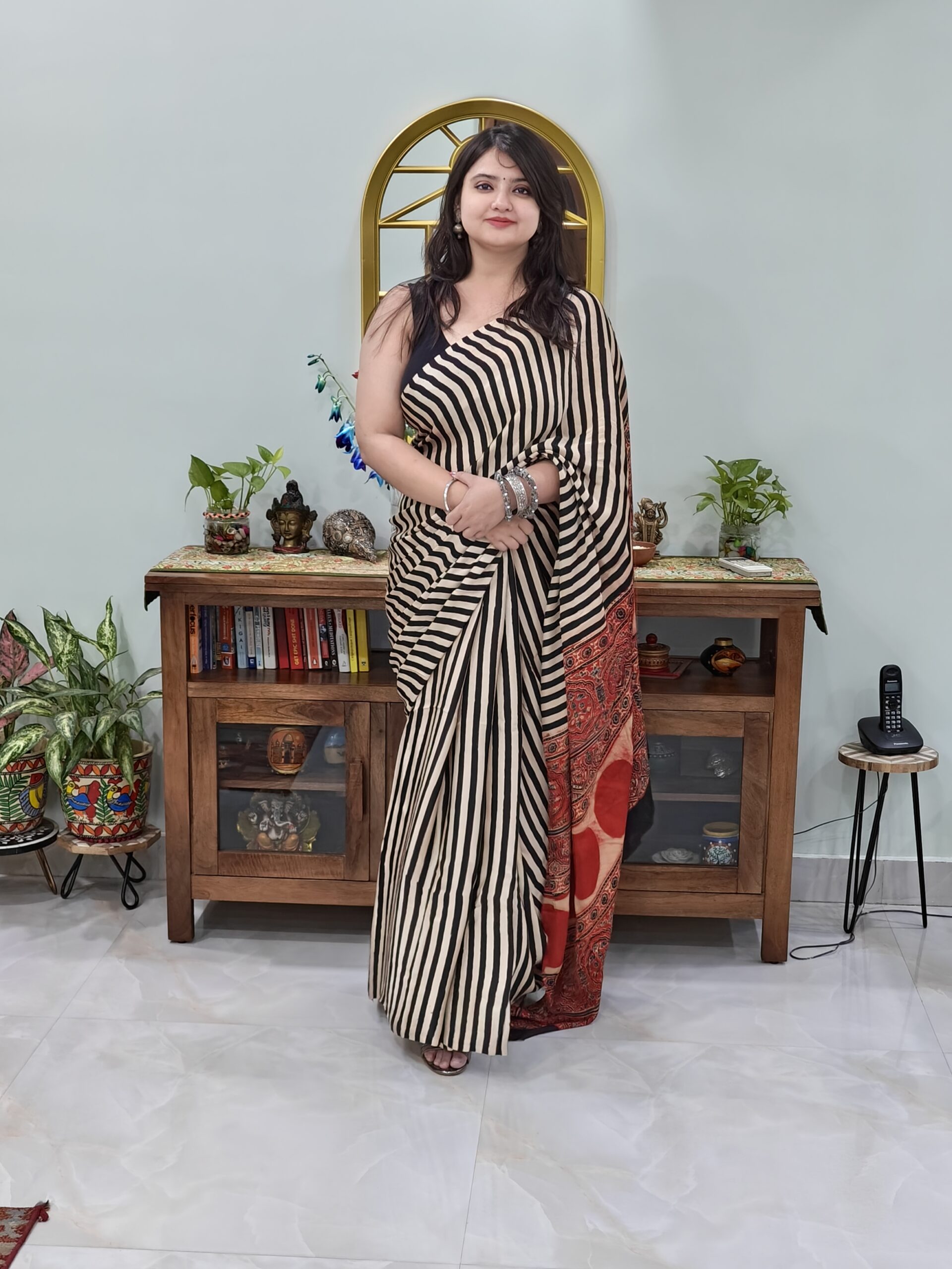 | colour : Black and white stripes | Ajrak print |